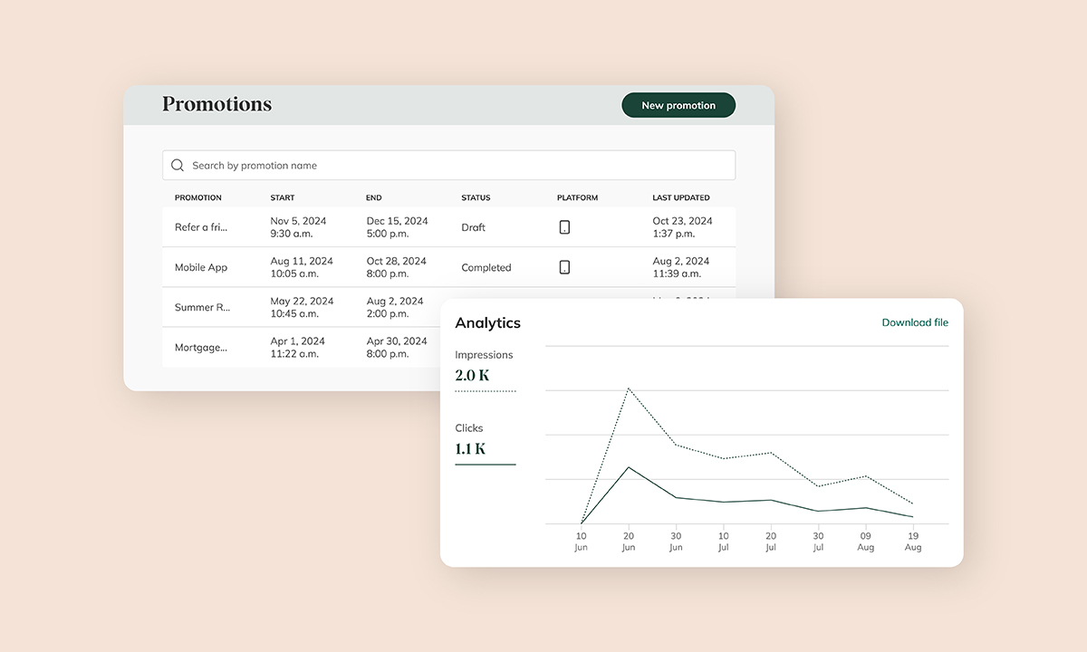 Finally, we've expanded where and how end-users interact with promotions on their web or mobile digital banking experience to build successful campaigns. We have expanded the available real-estate for promotions on the digital banking dashboard to ensure that users are viewing promotions in the areas that they are spending the most time. End-users now also have the ability to click into card or banner image promotions and be redirected to a corresponding link configured by the admin team.